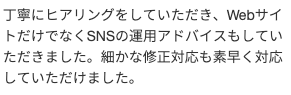 お客様の会社のWeb担当者として、全面的にバックアップさせていただくことが可能です。